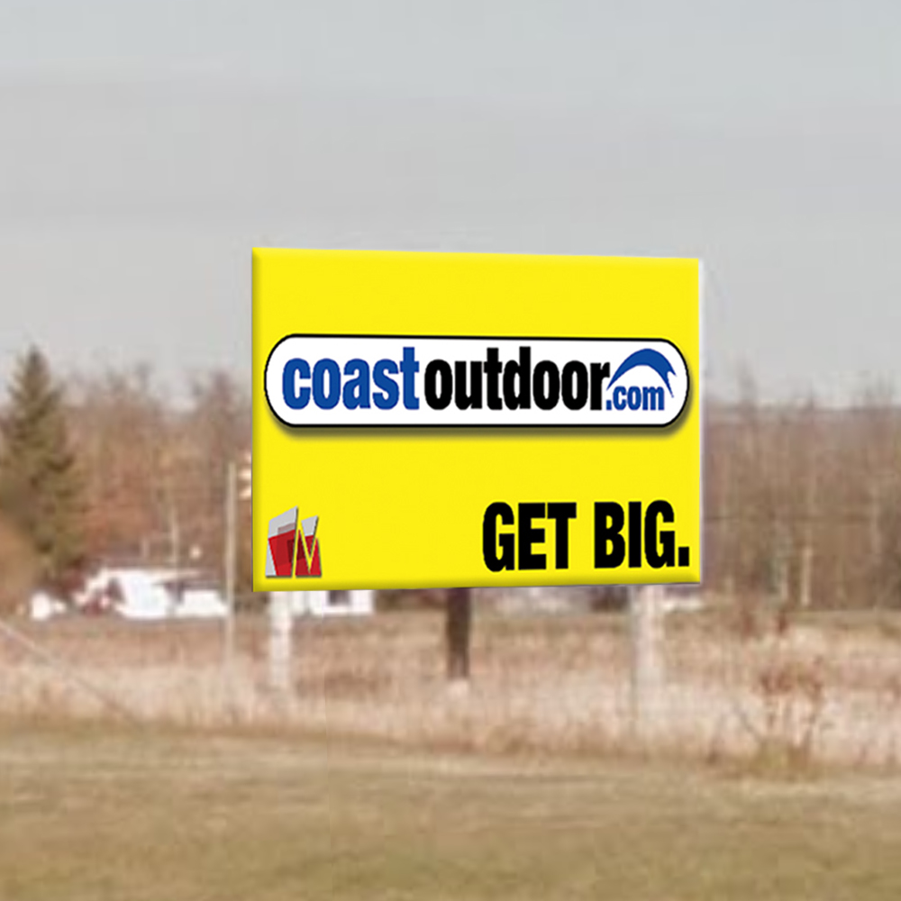 Location FJ-09S is an unlighted, 8'x12' horizontal billboard in a south-facing location reaching northbound traffic headed into Ft. Saint John at North Peace Regional Airport.